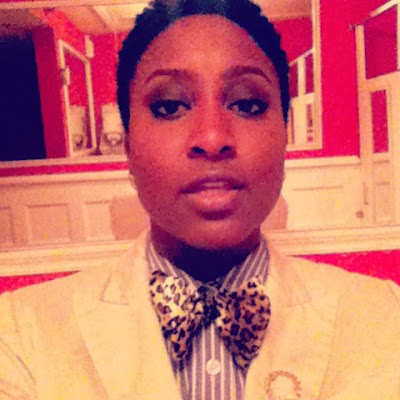 | H&M jeans and blazer, Thomas Pink Shirt, brownbelle bow tie, vintage lapel pin, Louis Vuitton clutch, BCBG shoes |